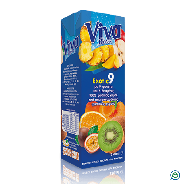 Με 9 φρούτα και 7 βιταμίνες από συμπυκνωμένους χυμούς και πολτούς φρούτων (μήλου, ροδάκινου, σταφυλιού, πορτοκαλιού, μάνγκο, πάσιον, ανανά, βερίκοκου, ακτινιδίου) και Βιταμίνες (E, C, Θειαμίνη, Ριβοφλαβίνη, B6, Νιασίνη, Φολικό οξύ).