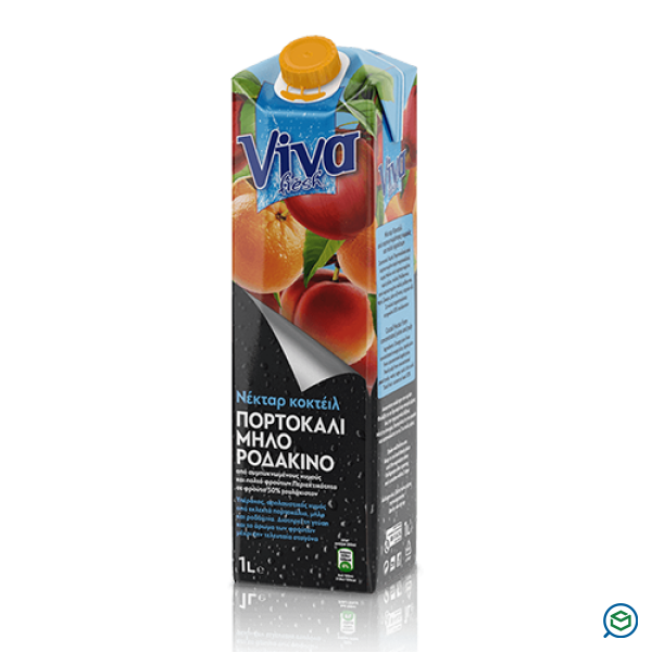 Viva - Νέκταρ Κοκτέιλ Πορτοκάλι, Μήλο & Ροδάκινο 1L - Τεμάχιο