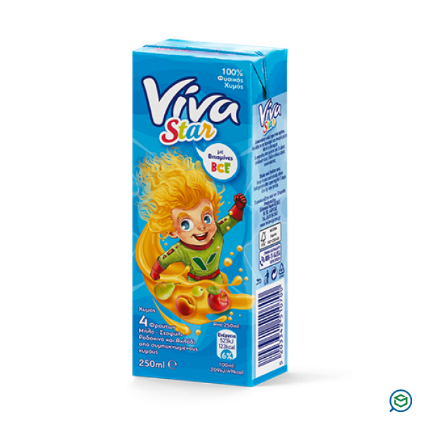 Viva Star - Μήλο-Σταφύλι-Ροδάκινο & Αχλάδι 100% Φυσικός Χυμός 250ml - Τεμάχιο