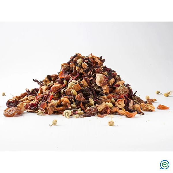 Κομμάτια μήλου, σταφύλι (σταφύλι, ηλιέλαιο), φράουλα, ιβίσκος, χαμομήλι, safflower, άρωμα. Χωρίς καφεΐνη.