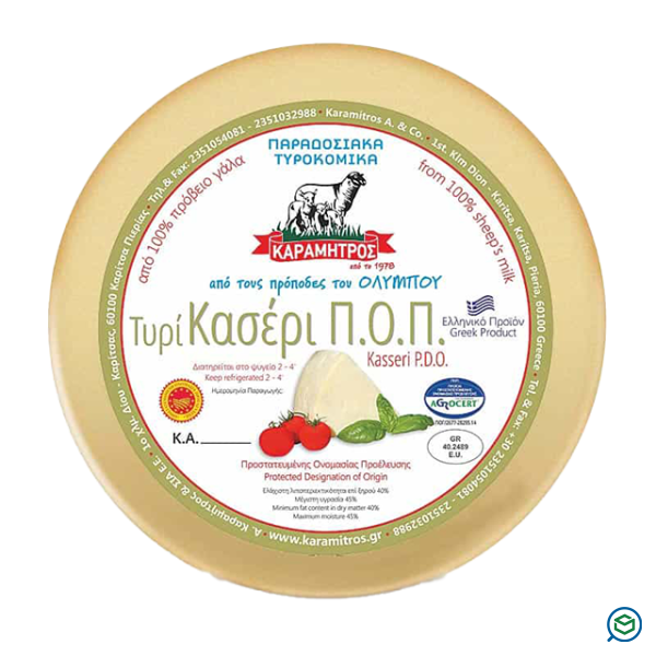 Το κασέρι Π.Ο.Π. Καραμήτρος, με την μακρόχρονη ιστορία τριών γενεών, παράγεται από 100% ελληνικό πρόβειο γάλα. Εκλεκτό τυρί Προστατευομένης Ονομασίας Προέλευσης με πλούσια γεύση και χαρακτηριστικό άρωμα. Συσκευασίες 9 kg κεφάλι 4,5 kg κεφάλι αεροστεγής