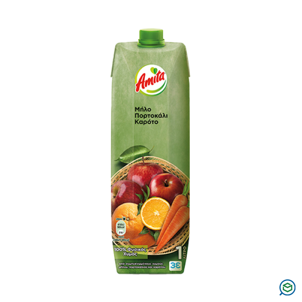 100% φυσικός χυμός από συμπυκνωμένους χυμούς μήλου, πορτοκαλιού και καρότου. Δροσιστικός χυμός πλούσιος σε βιταμίνες και με υπέροχη γεύση. Σε πρακτική χάρτινη συσκευασία Tetra Pak®.