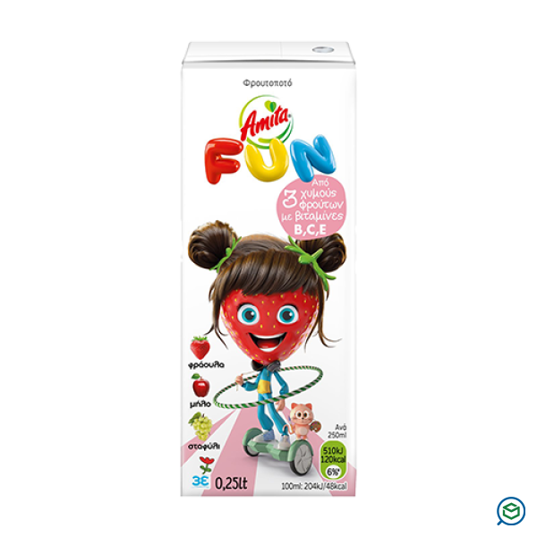 Οι χυμοί Amita FUN! είναι ο πιο νόστιμος και διασκεδαστικός τρόπος για να γνωρίσουν τα παιδιά τις γεύσεις των φρούτων και να τα εντάξουν στην καθημερινή διατροφή τους.