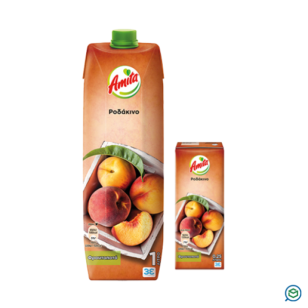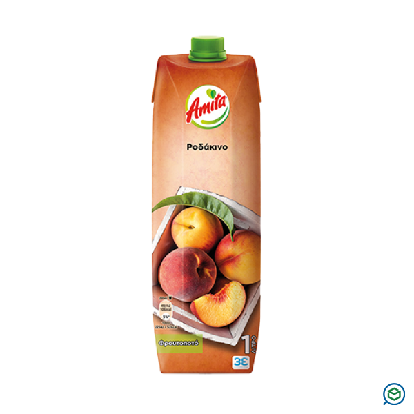 Φρουτοποτό από πολτό ροδάκινου. Οι χυμοί Amita δεν περιέχουν συντηρητικά και πριν τους ανοίξετε μπορείτε να τους αφήνετε εκτός ψυγείου χωρίς τον κίνδυνο αλλοιώσεων, χάρη στην παστερίωση τους και στις χάρτινες συσκευασίες TetraBrik Aseptic