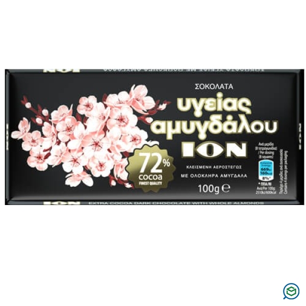 ΙΟΝ - Σοκολάτα Υγείας Αμυγδάλου 72% Κακάο 100gr. - (Ολόκληρα Αμύγδαλα) (3407) - Τεμάχιο