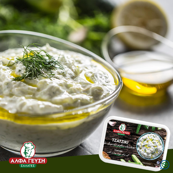 Η σαλάτα που δεν λείπει από κανένα ελληνικό τραπέζι. Σπιτική συνταγή από την Άλφα Γεύση, με πολύ φρέσκια και δροσιστική γεύση. Με Ελληνικό Στραγγιστό Γιαούρτι, Φρέσκο Αγγουράκι και Φρέσκο Σκόρδο που κάνουν τη διαφορά. Η συνταγή ολοκληρώνεται φυσικά με το Εξαιρετικό Παρθένο μας Ελαιόλαδο. Η συνήθεια που έγινε λατρεία… Το όνομα "Άλφα Γεύση” έγινε συνώνυμο της κορυφαίας σαλάτας στην Ελλάδα και αποτελεί εγγύηση σε ότι έχει να κάνει με ποιότητα και αυθεντική ελληνική γεύση.