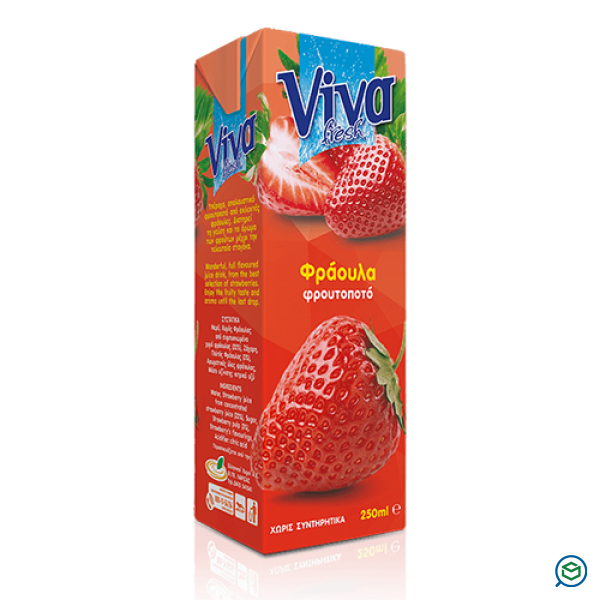 Υπέροχο, απολαυστικό φρουτοποτό από εκλεκτές φράουλες. Διατηρεί τη γεύση και το άρωμα των φρούτων μέχρι την τελευταία σταγόνα. Συστατικά: Νερό, χυμός από συμπυκνωμένο χυμό φράουλας 22% τουλάχιστον, ζάχαρη, πολτός φράουλας 3%, αρωματικές ύλες φράουλας και κιτρικό οξύ (μέσο οξίνισης).